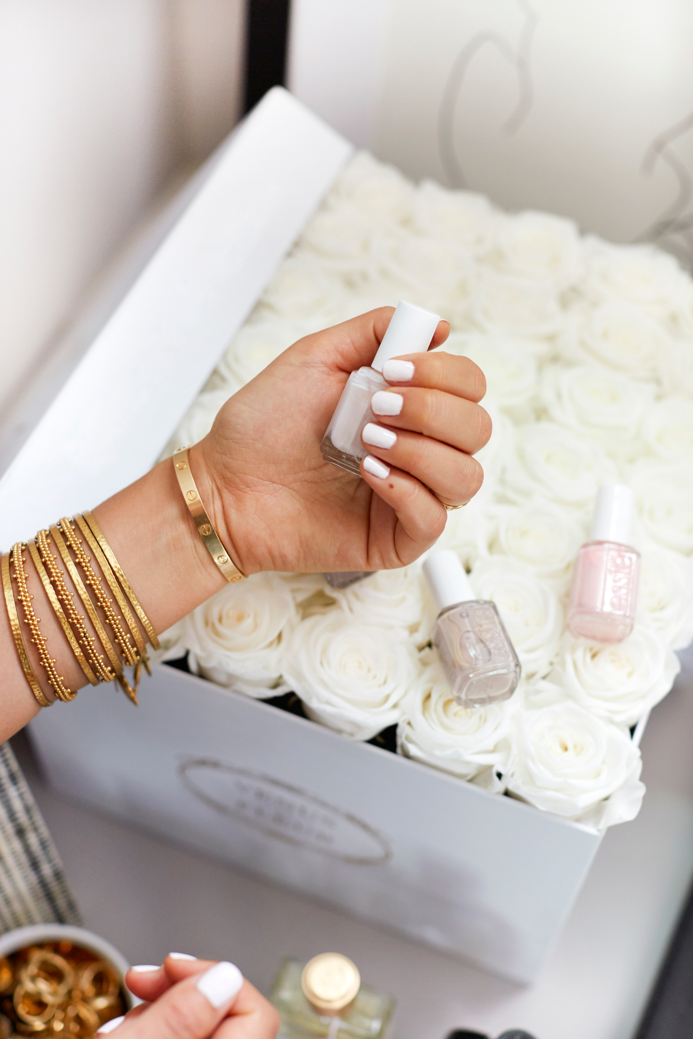 There’s something sooooo therapeutic about plopping down in front of the TV and painting my own nails. I’ve been using essie for years (Marshmallow is my go-to!) and am obsessed with their new Treat Love & Color 1-step system. It’s infused with collagen which makes nails stronger and brighter (woohoo!) – AND comes in 4 of the prettiest neutral shades (I’m wearing this ivory rose color called “In a Blush.”)