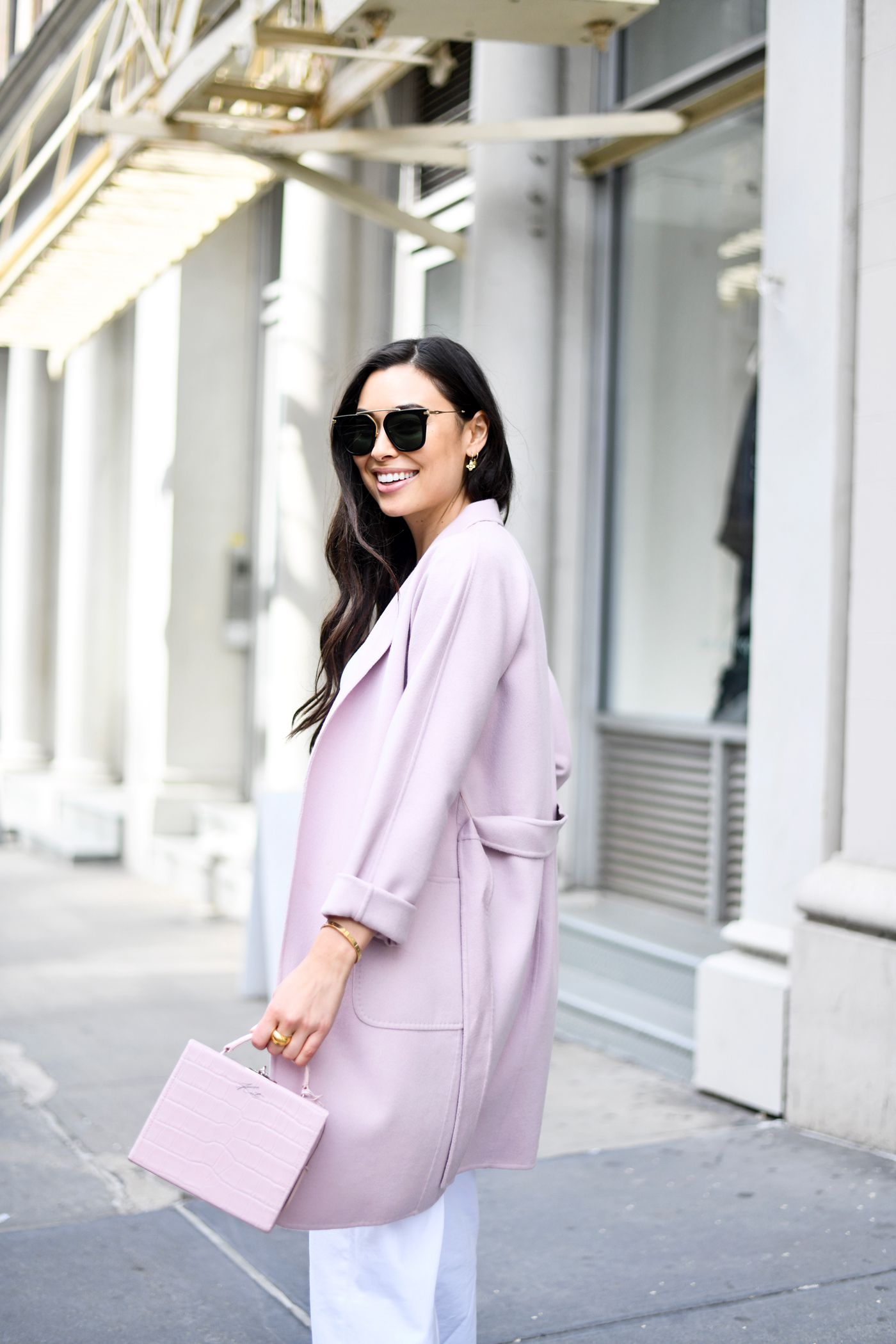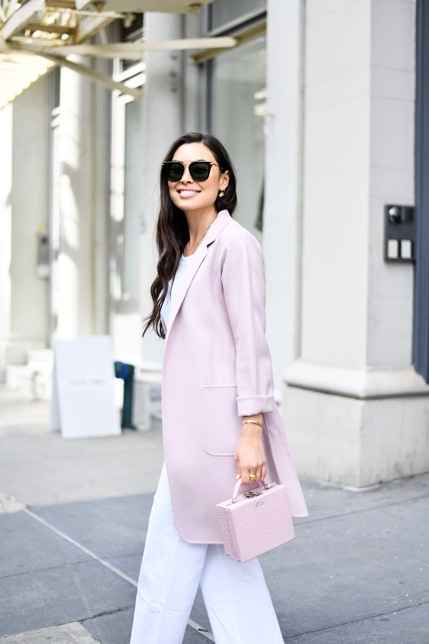 Rarely, I wear pink, but with the season change, I’ve been craving color! I bought this pink coat at Max Mara years ago in Milan, but haven’t worn it enough because I’ve been stumped on how to style it. I realized I’ve been overthinking it and need to just keep things simple. So I paired this coat with a plain white T and white jeans. You can never go wrong with a head to toe monochrome look and a pop of color.