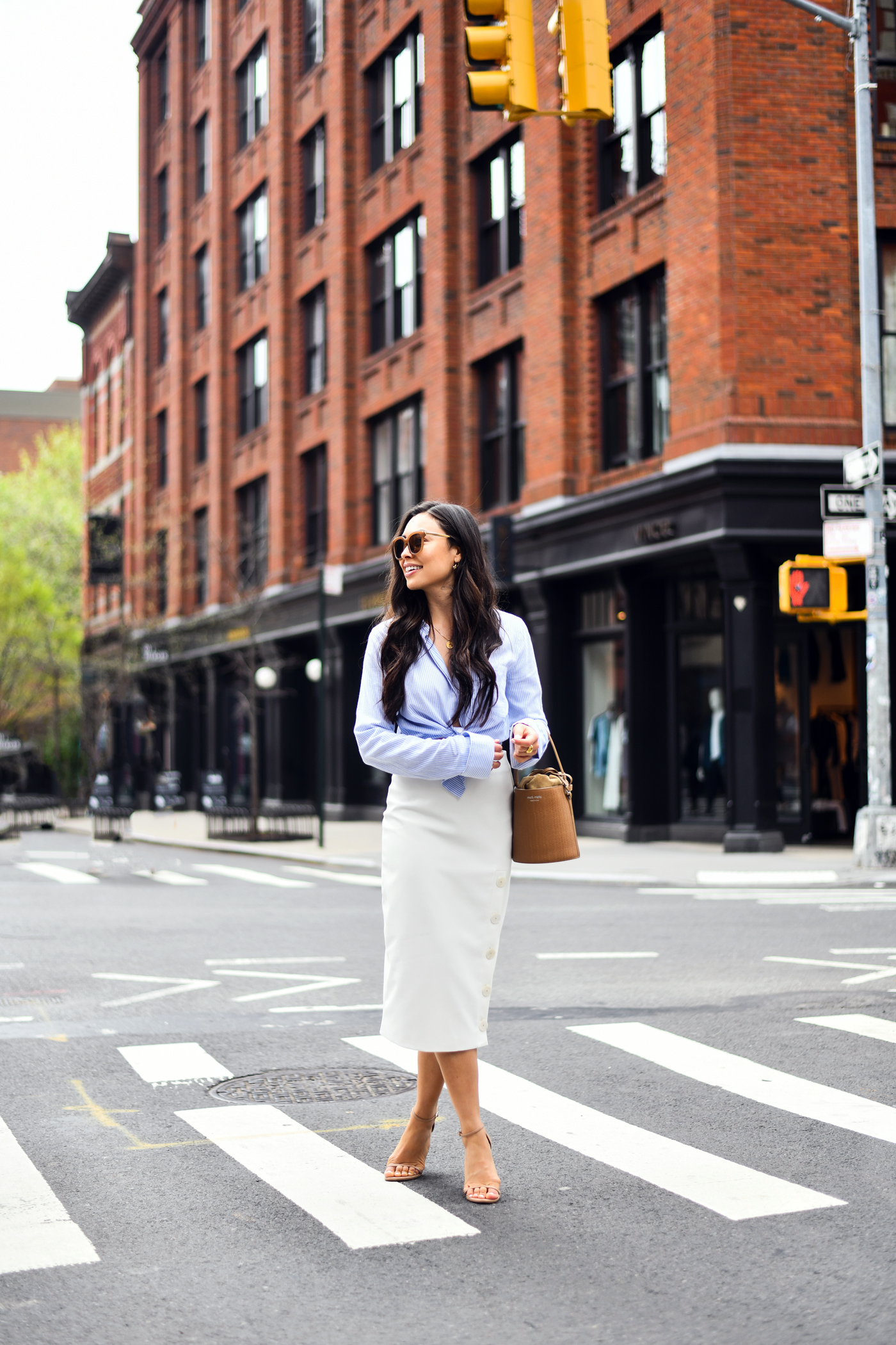 So beautiful! When I think of a pencil skirt I usually think of a black one and it’s nice to see one in white, it looks so pretty. And I love how you tied the shirt at the waist, it looks more fun.