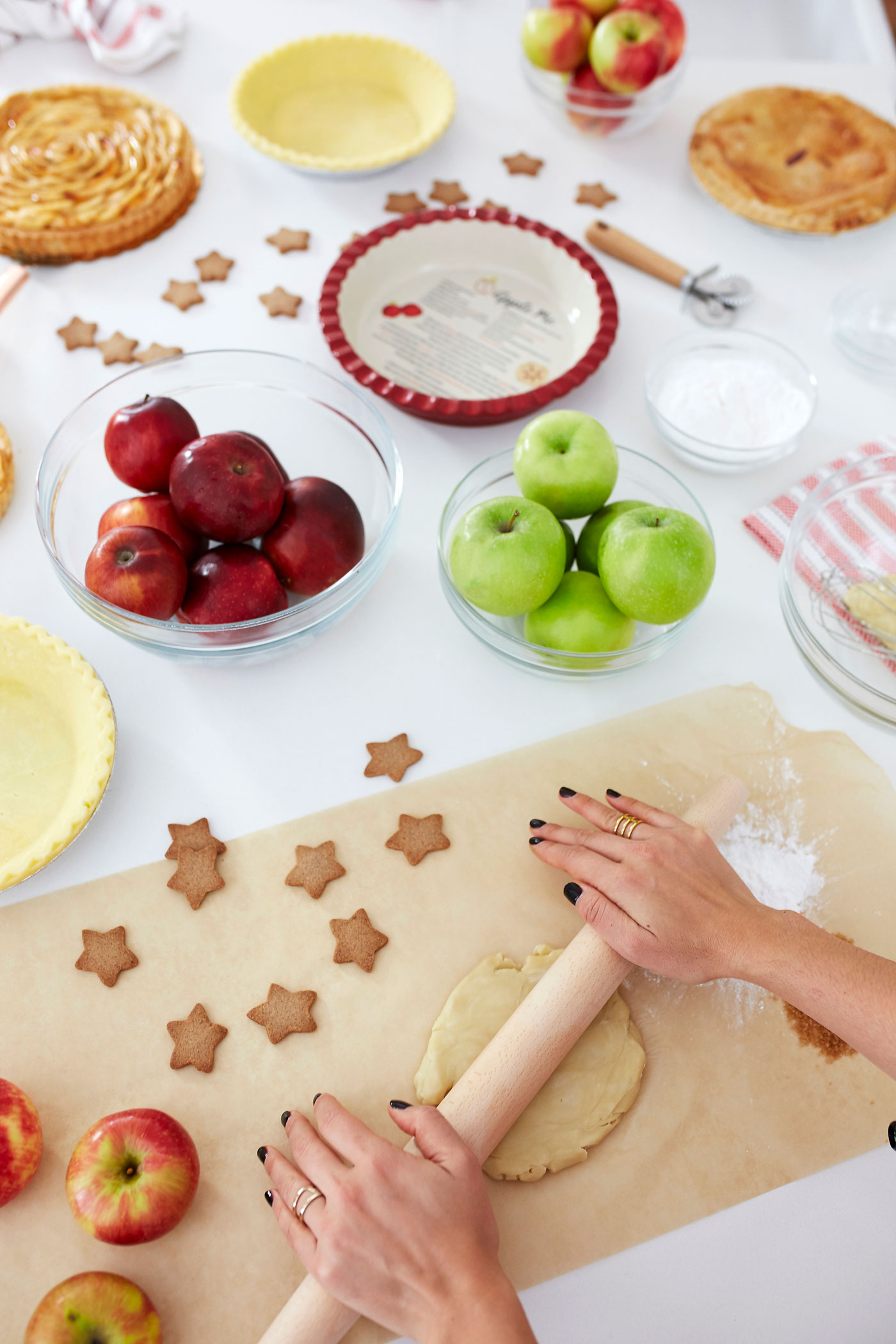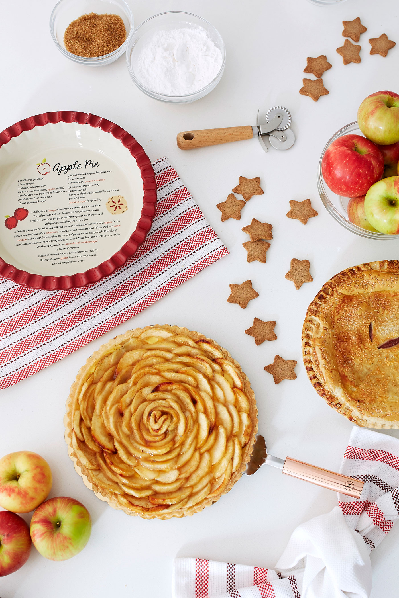 I loved how the recipe for the pies was at the bottom of the pie dish – talk about easy peasy. This pie dish and these festive dish towels would make such a nice hostess present if you’re heading somewhere for the holidays or have a Secret Santa party to attend! Shop everything I used for my apple pie making below!