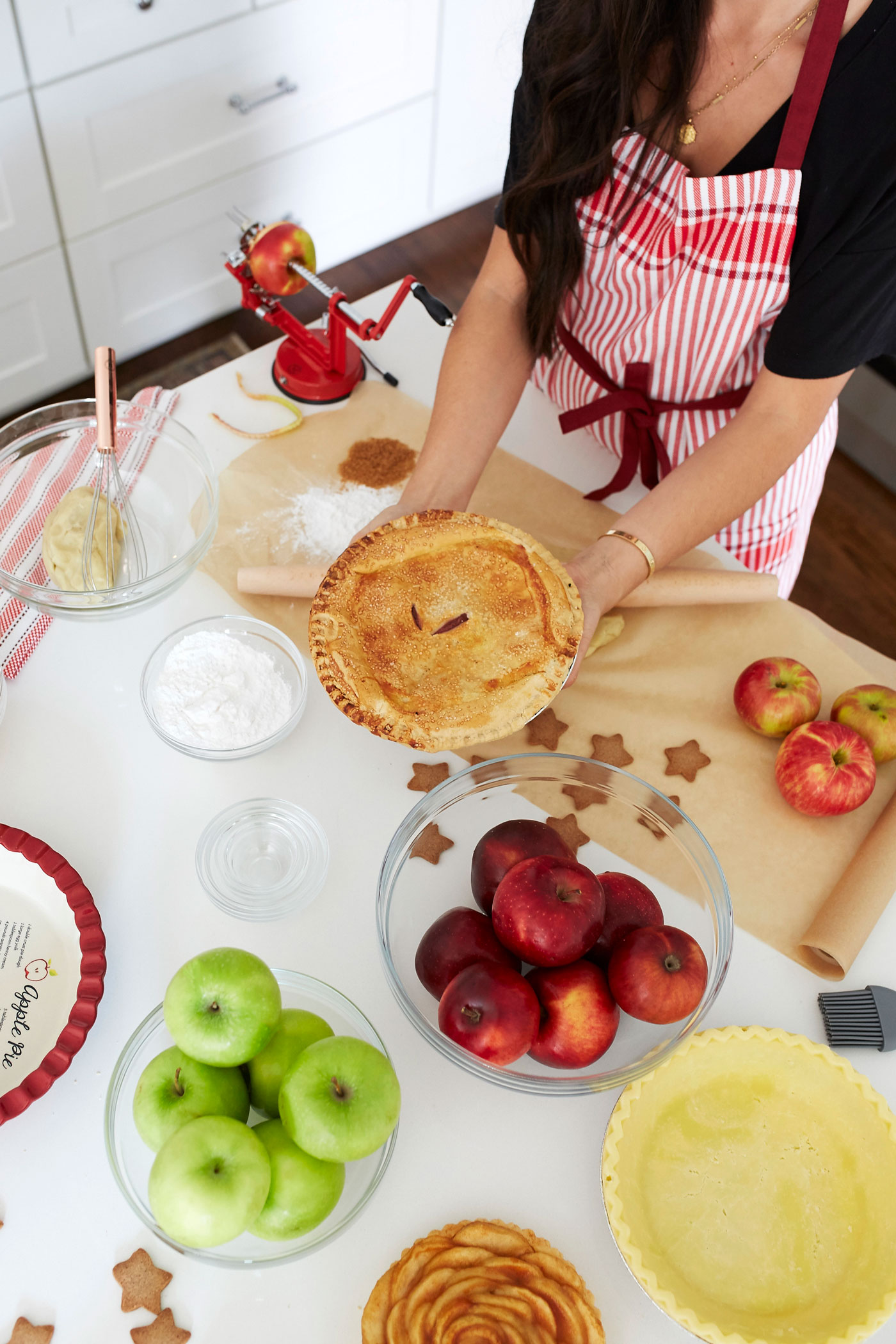 Thanksgiving isn’t complete without an apple pie for dessert am I right?!!!! How cute are these pie making accessories and apron all from the Martha Stewart collection created for Macy’s?! I was in h-e-a-v-e-n when they arrived. This will be darling for Christmas baking as well. And such a great activity to do with family and loved ones :) It took me a while to figure out how to peel the apples, but once I did, this apple peeler made it seamless – and fast.