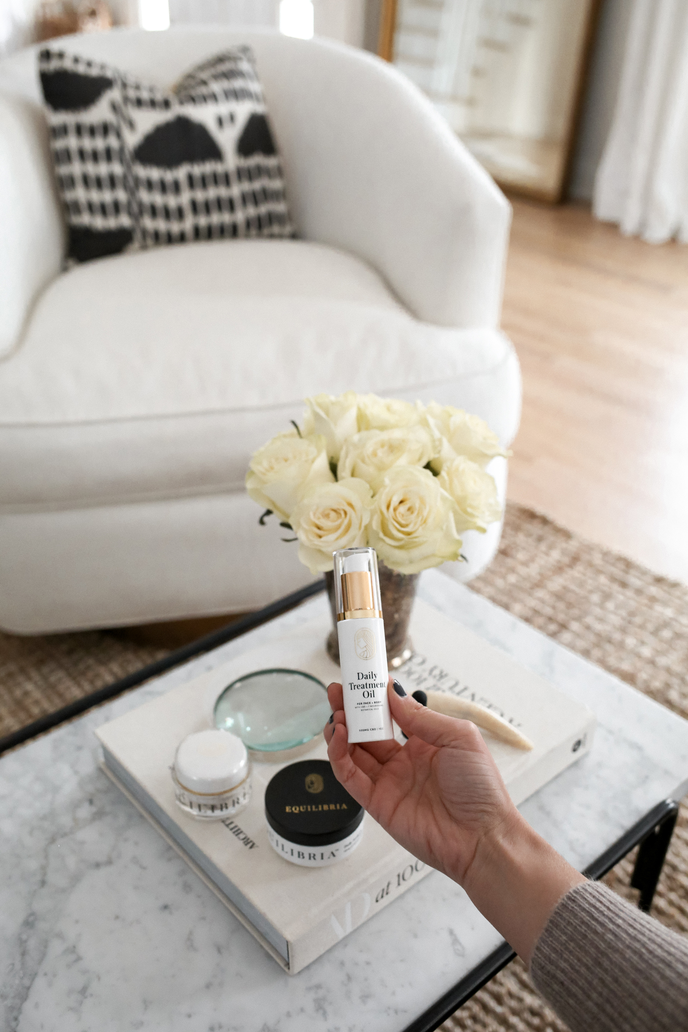 Probably my favorite benefit though, is that it really helps alleviate my period pain. I get the worst cramps and am usually knocked out for the first 2 days. The gels combined with the Relief Cream during my period has become such a nice self care ritual. The Daily Treatment Oil is a gorgeous face oil that doesn’t break me out, and makes my skin feel bright and hydrated. I like to use it alone or with my gua sha when I need a little boost or before a shoot.