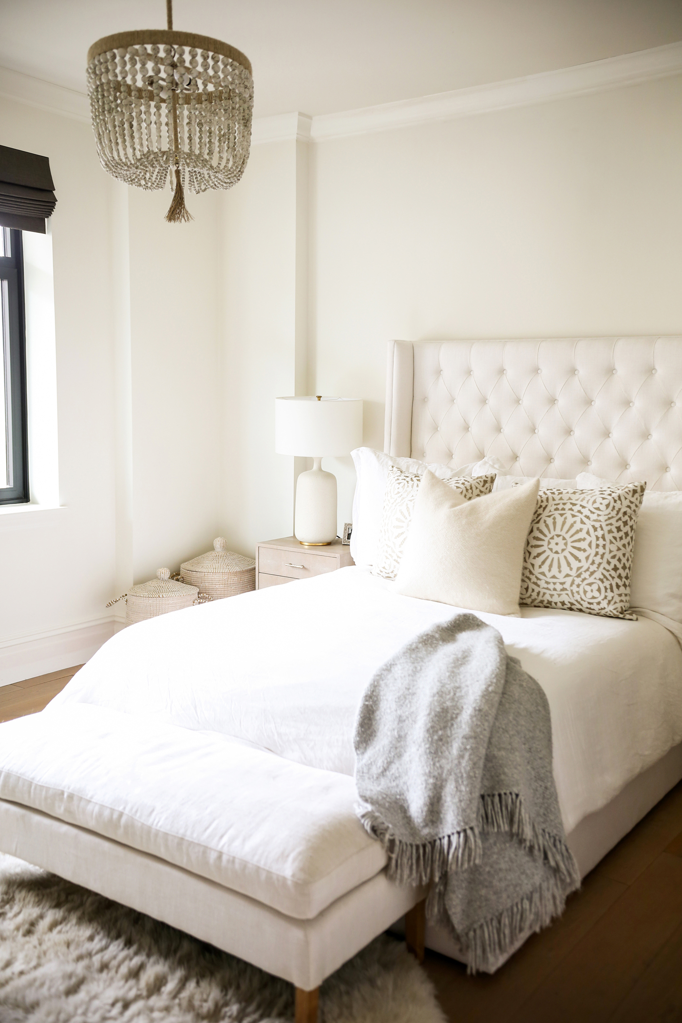 My bed frame and bench are both from Restoration Hardware (shocker haha!) Both are in the white Belgian linen material.