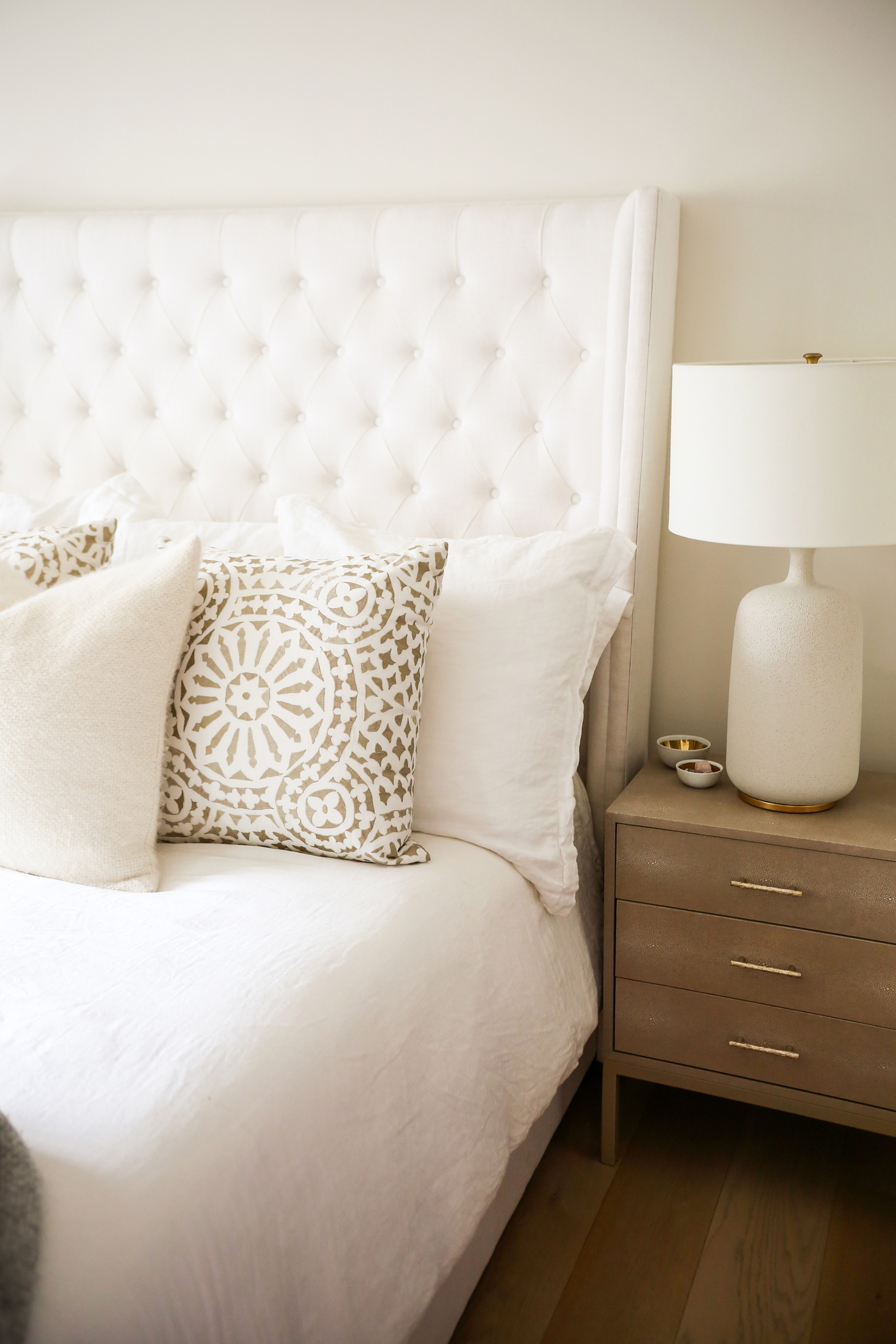 My favorite decorative pillows and throws are from Jenni Kayne. I have the alpaca pillow in cream and blanket in grey. The patterned pillows I always get asked about were custom made years ago from an interior designer I worked with, but these are similar! I have 2 king size pillows in the Restoration Hardware white linen, and then 3 euro size pillows in the same material on my bed. I also really love these linen pillows in various sizes and colors from The Citizenry.