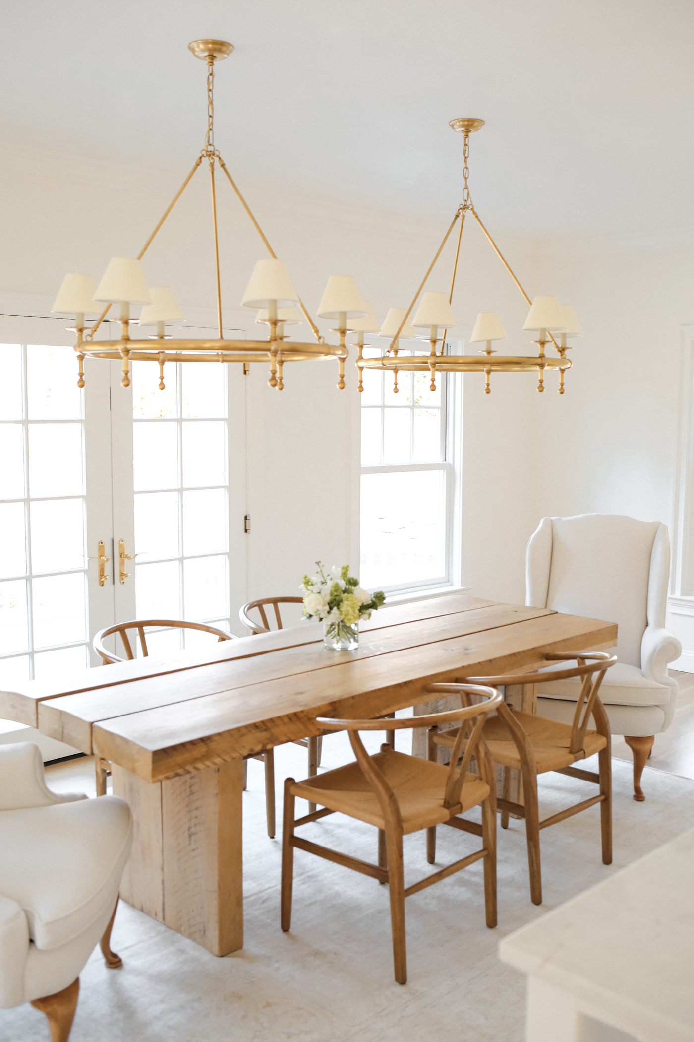 These Visual Comfort chandeliers are one of my favorite pieces in our entire home. They are so classic and well made. They really make a statement and elevate the entire room. The previous owners had a straw/rattan set of chandeliers which were really fun, but they made the home feel too rustic/casual for our personal preference. The brass chandeliers really add that elegance I wanted in the room.