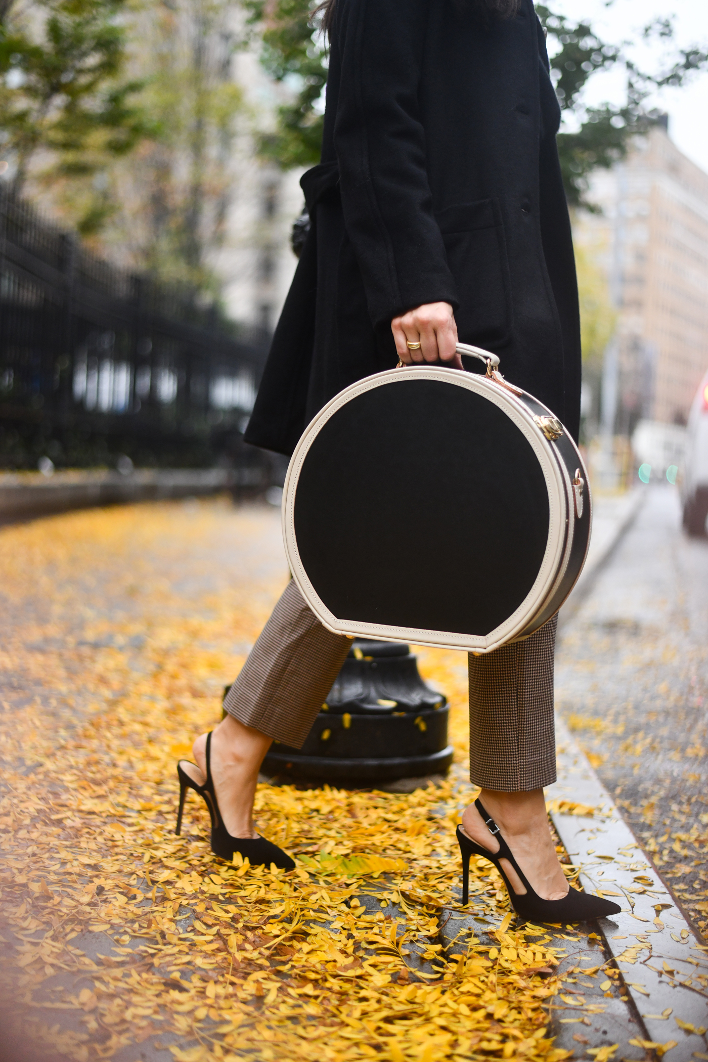 I paired this coat with my new Schutz heels (so affordable!), and fun houndstooth trousers. I love a trouser – especially a houndstooth print. Also, I linked 7+ options below of all price ranges. As a fun accessory, I brought out my Steamline Luggage hat box which is not only functional, but chic as a home decor/closet accessory! I linked another option here which comes in several colors and would make a great gift for the fashionista in your life!