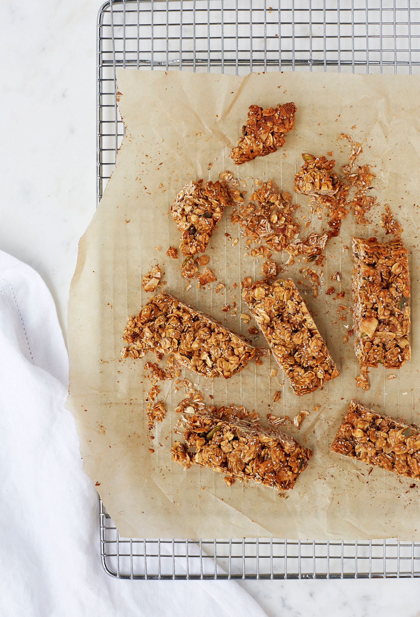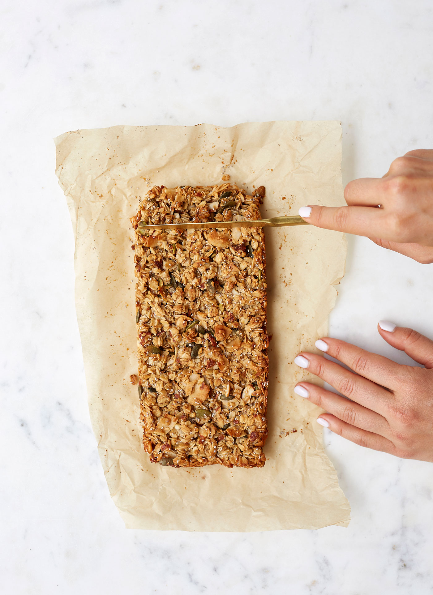 What better way to kick off October than with a yummy fall inspired recipe from my cookbook?! These homemade granola energy bars are mouth-wateringly good and you’ll want to keep a stash at home and at work! Your coworkers will love you for bringing these in – and won’t believe how easy they were to make. I always get asked what I eat in a day, and what I snack on. These granola bars are the perfect treat to have if you’re on the go and don’t have time to make breakfast, want a mid day snack that isn’t a processed energy bar, or are craving something sweet after dinner. I love carrying these in my bag so I always have a healthy treat to reach for when I’m out and about!