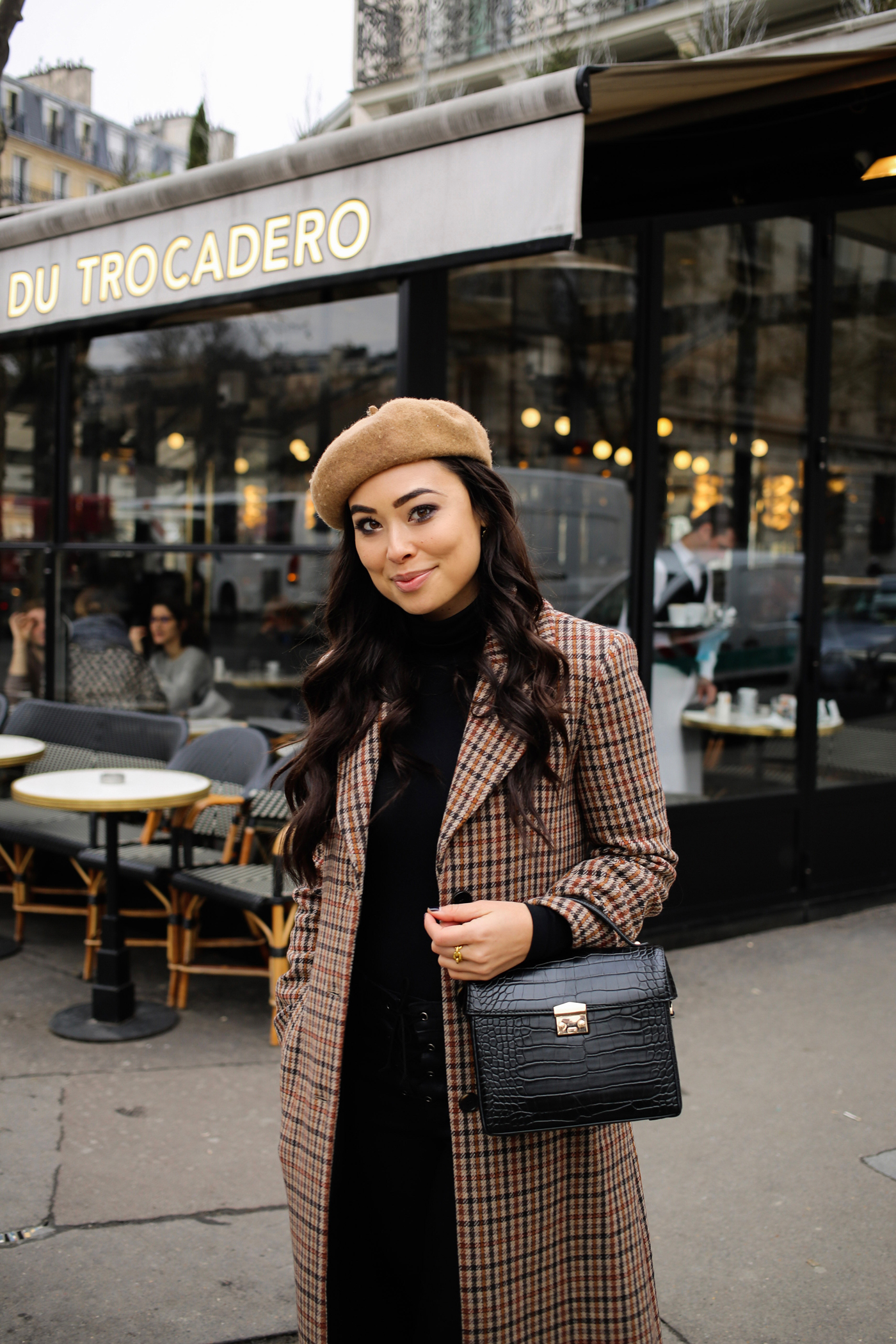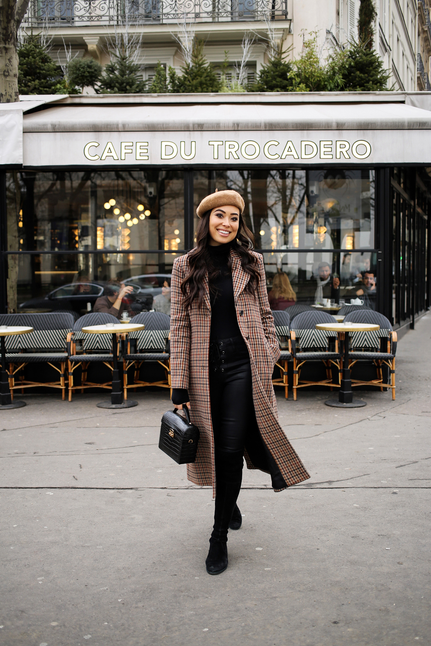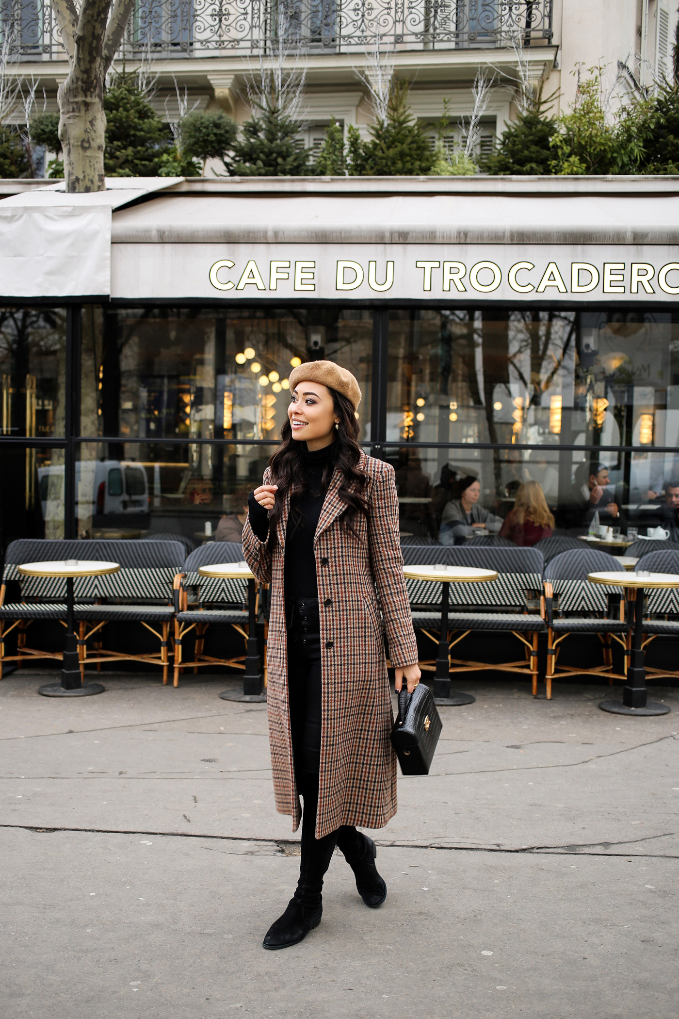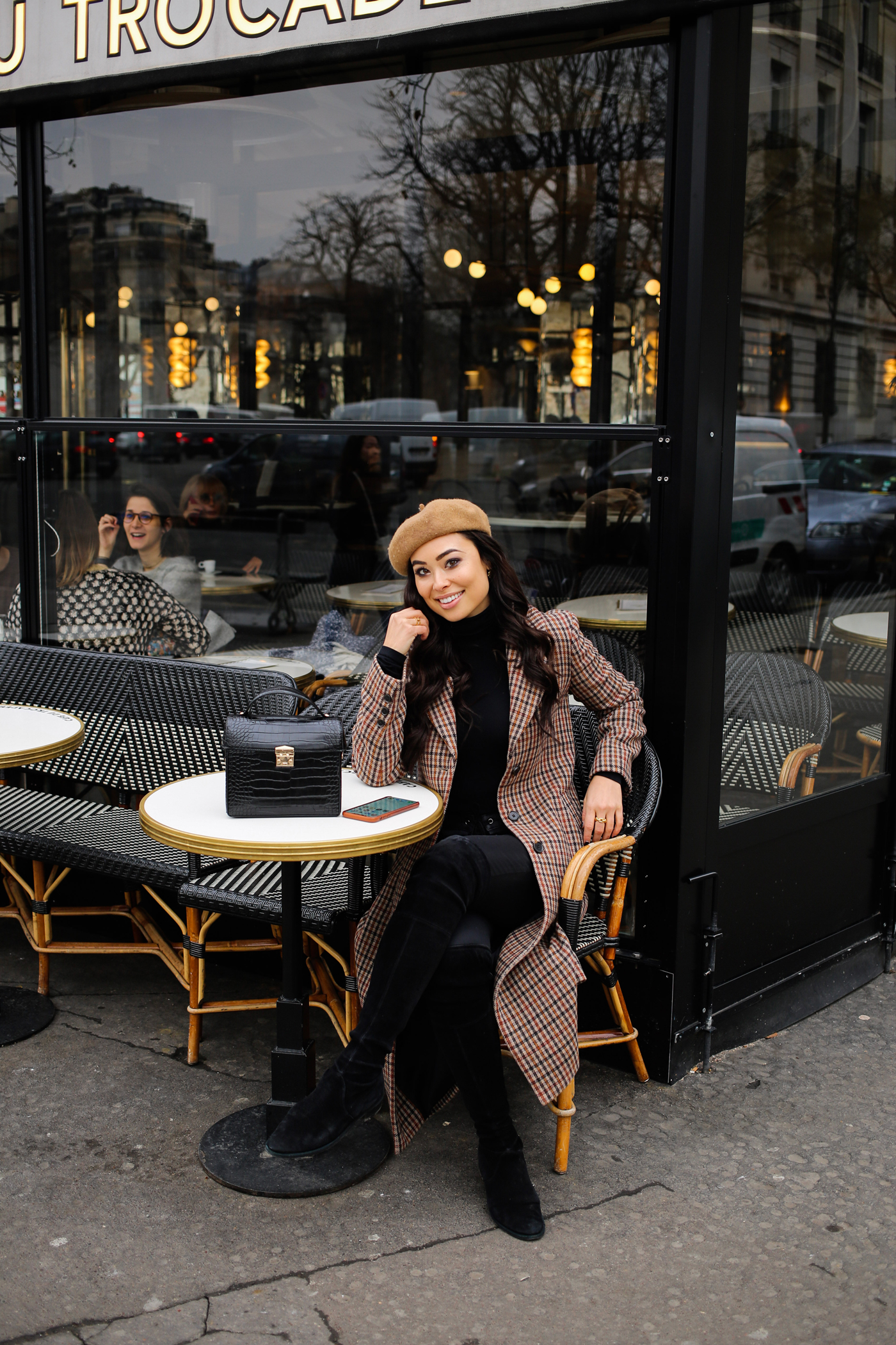 I couldn’t resist accessorizing my outfit with a camel beret. I mean, when in Paris right?! It was freezing when we were there, so this turtleneck and these suede over the knee boots were lifesavers.