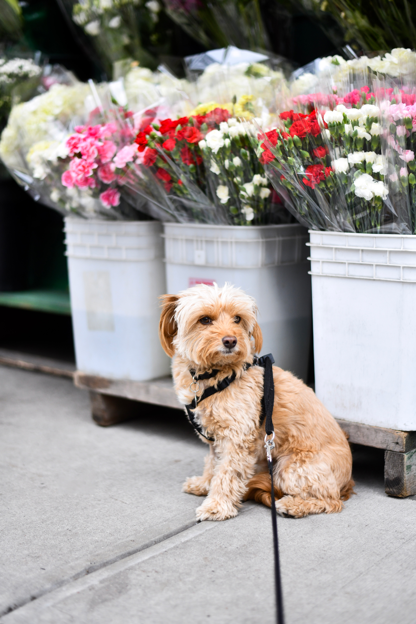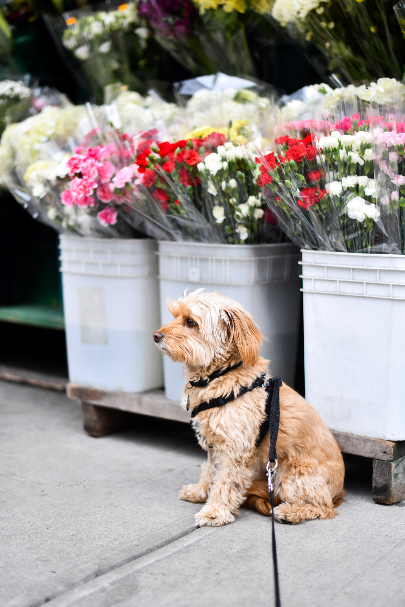 I take Charlie out about 5 times a day. 3 out of 5 of those times I usually take him on a very short loop around our block where he feels familiar and has already marked his territory. 2 out of 5 times I take him on longer walks to meetings, run errands, or a park. I really like having him be a part of my schedule and day and I feel fortunate that I have the flexibility to do this since I work from home. When I lived in LA, I used to take him on fun hikes every few weeks, or to the beach to run in the sand (which he LOVED!) Now that we are in NYC, I try to schedule puppy play dates and long walks with friends at the park on the weekends so he can get out + about and socialize.
