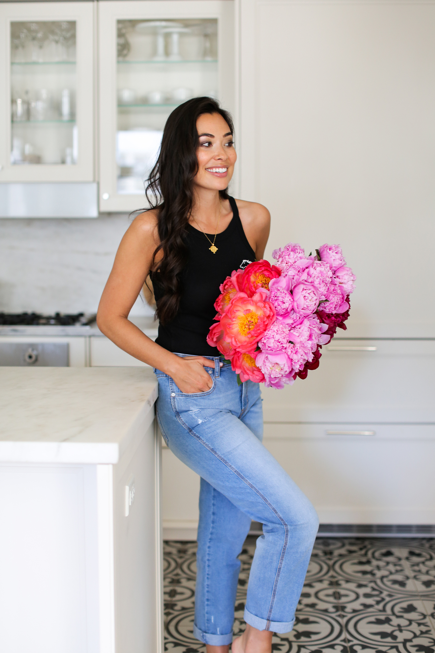 The weather has been heating up in NYC (finally!!!) so I wore these comfy, high waisted straight leg jeans from Jordache Vintage (available exclusively at Walmart Fashion) the day we got our flowers. It’s funny because Jordache jeans were actually the first pair of “adult” jeans I ever bought. They make your butt look amazing – yep they really do! T even said “Woah! I like those on you!” when I walked out in them haha. I love the denim wash on these (not too light, not too dark), and the slight stretch/relaxed fit. I hate when jeans stretch out too much. And these allow you to actually move around in them without completely changing shape.