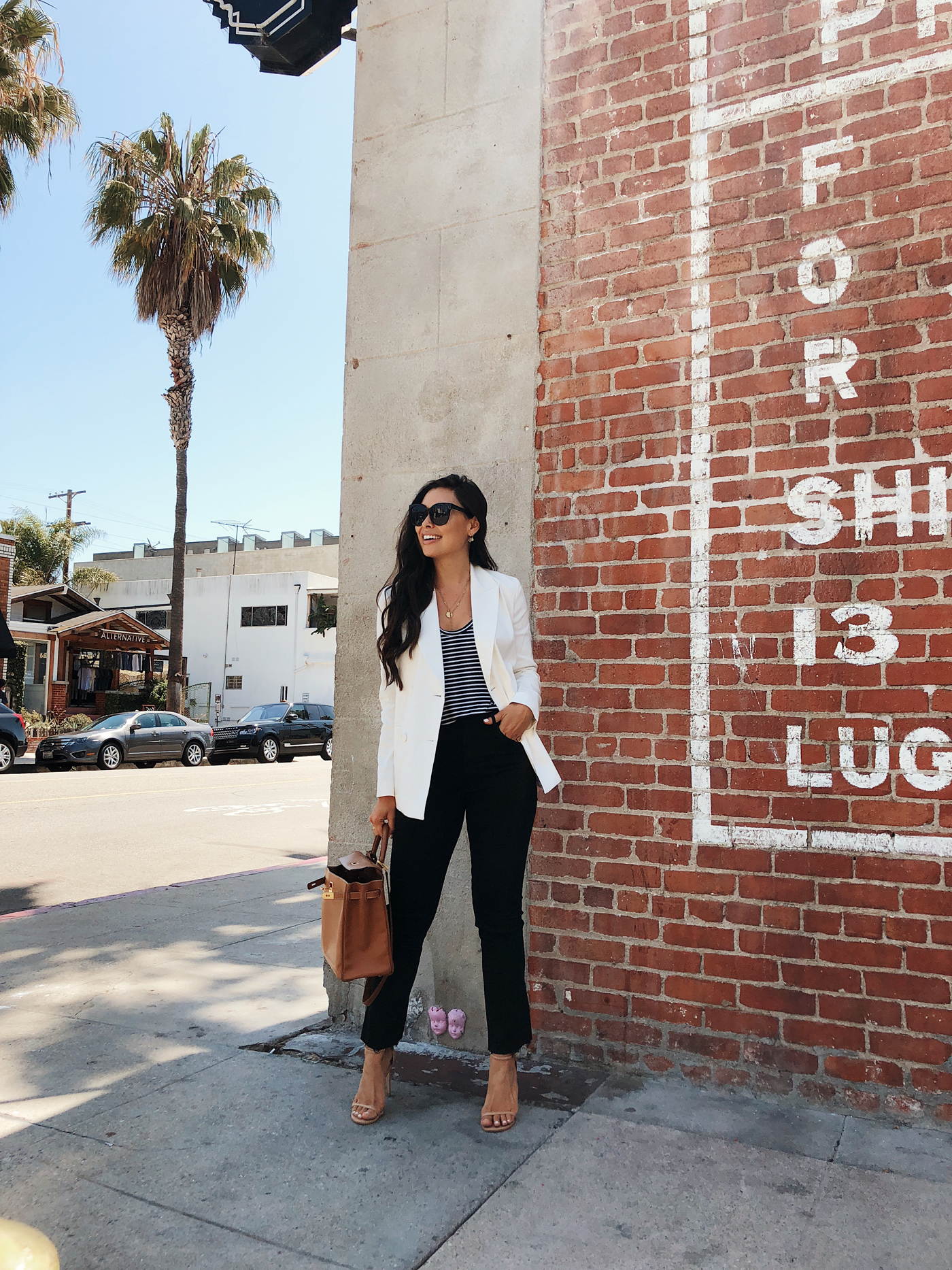 Since we were on set for 12+ hour days everyday this week wrapping up my big project – I didn’t have time to shoot any outfit posts!  Here’s a peek at a few outfits I wore and posted on Instagram :)  This Self Portrait dress would be so perfect to wear to a summer wedding and these Alexandre Birman heels are comfortable enough to dance in all night long.  This white blazer is only $45 and such great quality.  I’ve been living in this linen jumpsuit and am eyeing the stripe dress version here!  This Free People embroidered dress is by far my favorite purchase from June and the 3/4 length sleeves, flattering V neck cut, and length are all just perfect!