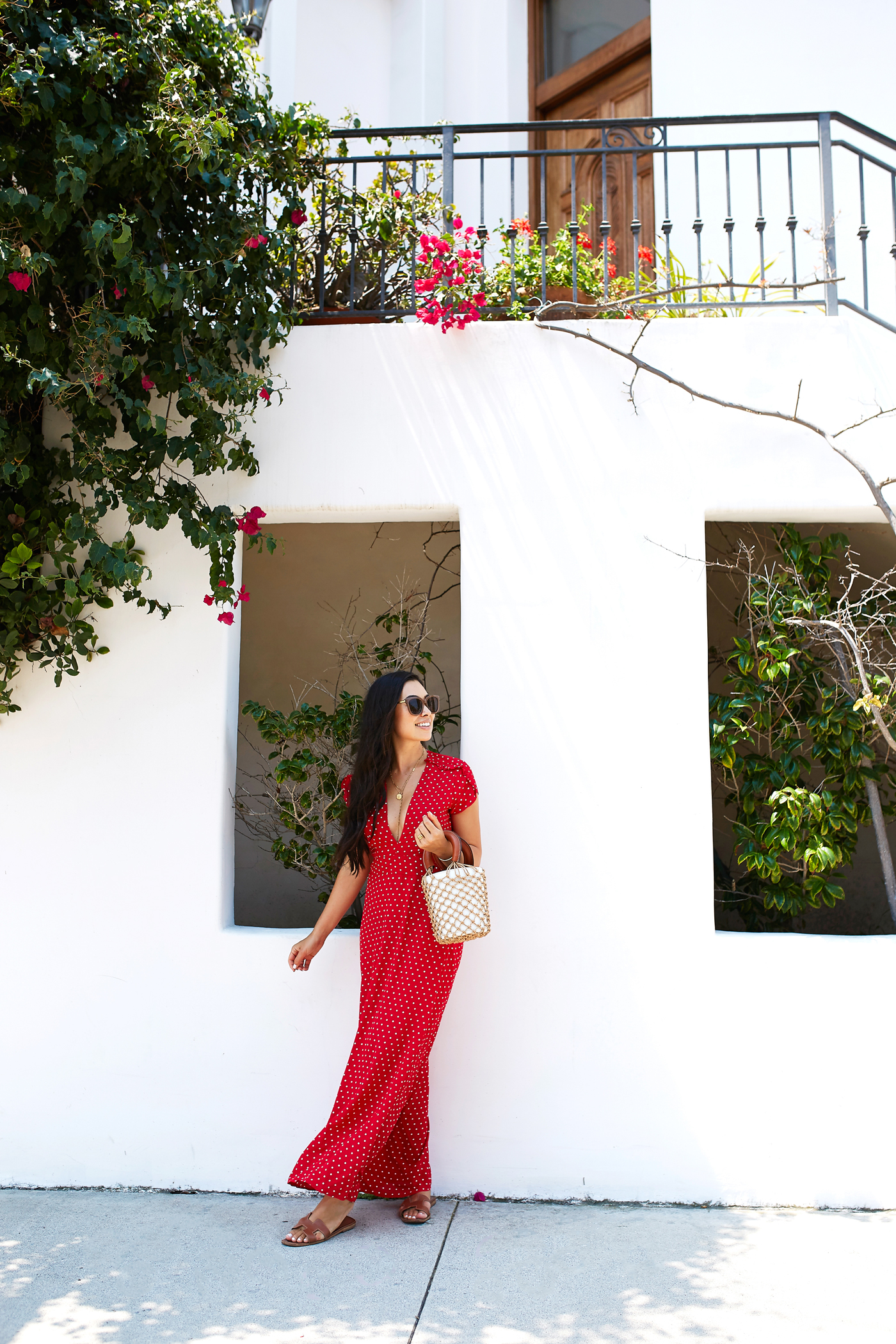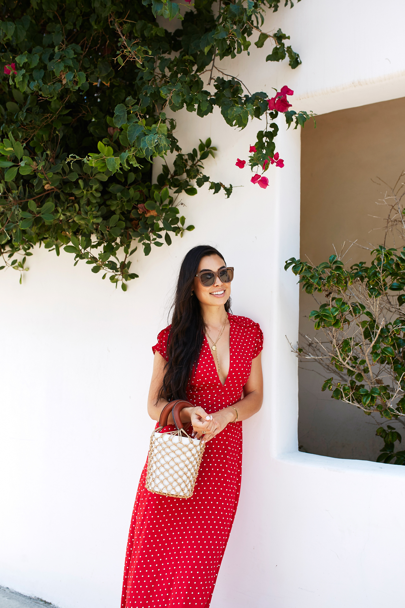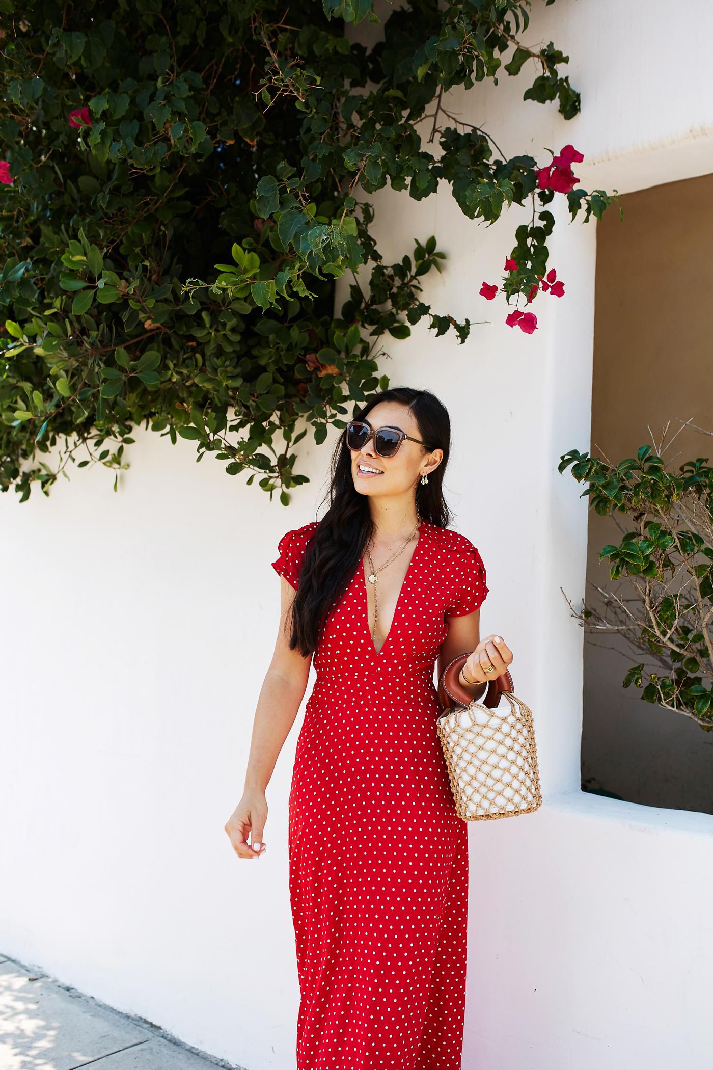 Sorry for the lack of posts last week!  I was planning on doing a post on my red eye, but the wifi wasn’t working for my 15 hour flight womp womp!  Anyways – I am now in Venice, Italy on the last leg of my Euro trip and am so excited to share all of my recommendations, favorite new spots, favorite go-to spots, tips/tricks, etc from this trip with you!  For now, here is an outfit I wore prior to my trip that had been on major repeat.  I adore this red sundress – it is so flattering, perfect for summer, can be worn during the day or at night, with flats or heels… I mean the possibilities are endless.  Also, I can’t stop wearing this Staud mesh bag – it just sold out in the white, but the brown is dreamy for fall and winter isn’t it?!  Shop my entire look below!