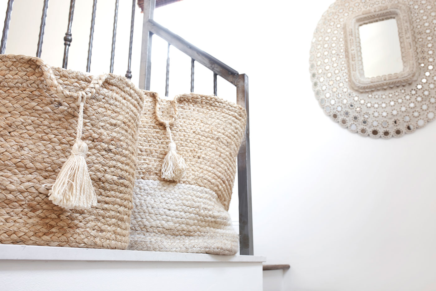 The last and final part of my Home Tour is here!  For this post, I wanted to focus on some of the special details that really make my house feel like a lived in, comfortable home.  I always want guest to feel like they can kick their feet up and stay awhile when they enter.  I knew I didn’t want to have anything too “precious” or formal since this is a beach house.  I’ve got a ton of linen pieces, mixed in with straw baskets, shearling, and light wood.  I incorporated high and low items – some from Restoration Hardware and some from Target.  Also, I didn’t follow any “rules” per se and just bought things that caught my eye and drew me in!