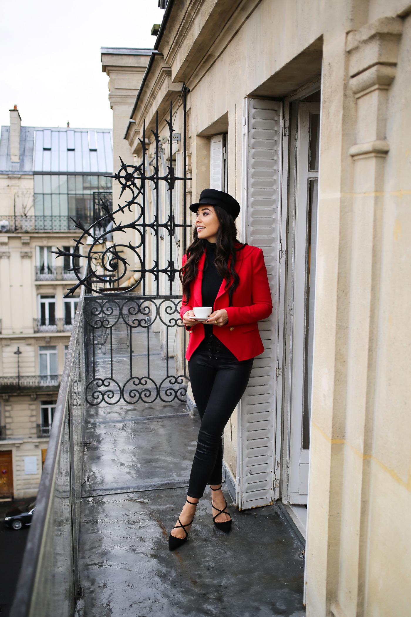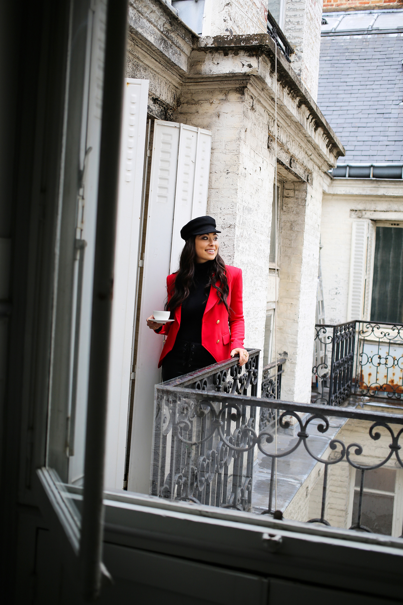 I am not surprised at all that Parisian balconies have so much charm! Ahh I love it! And your red blazer is so gorgeous!