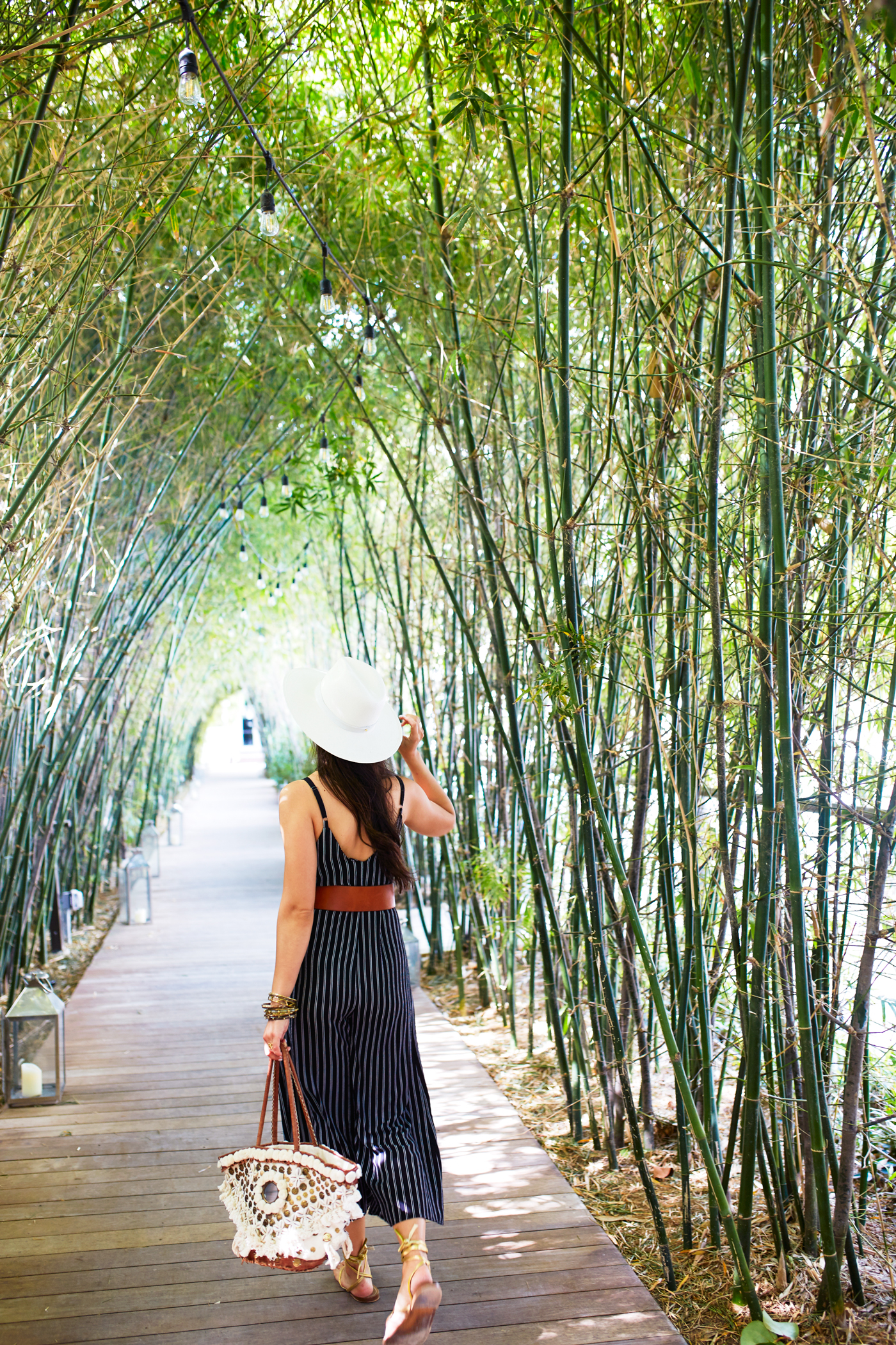 The jumpsuit is really cute! Love the straw bag too. :)