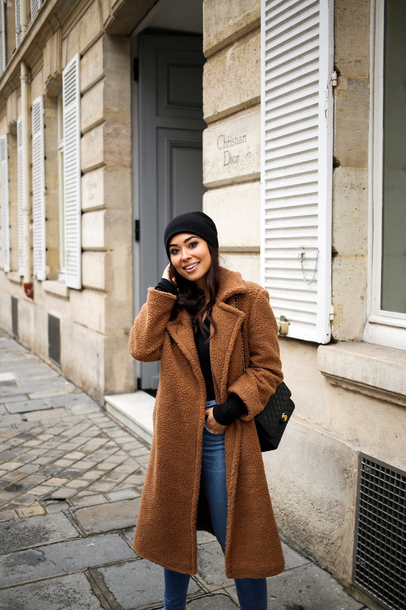 That’s such a cute coat! I had never seen such a long teddy coat, they’re usually short but I love the long one, it looks really cozy.