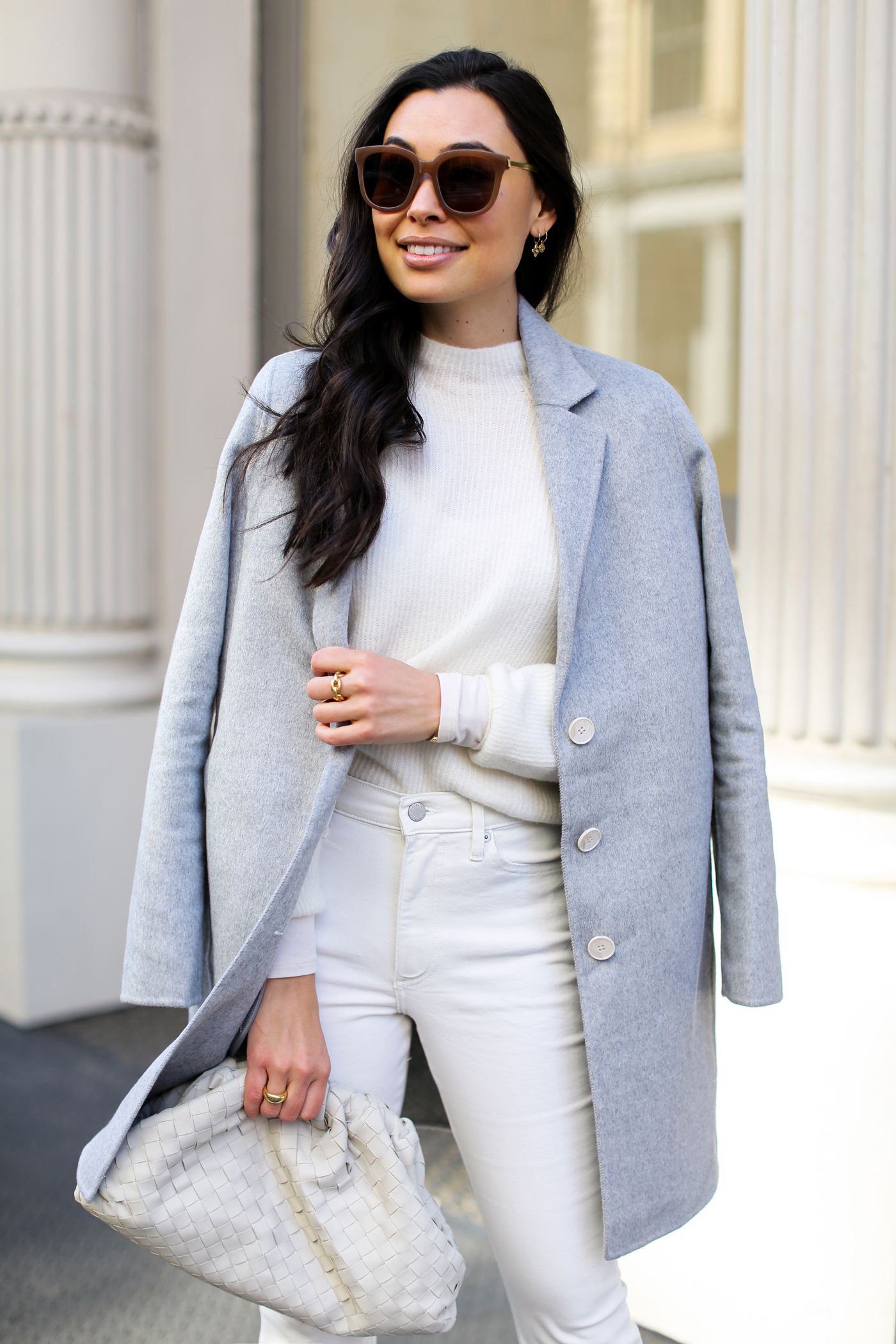 My fingers are crossed that the worst of winter is behind us! I am SO ready for spring! These beautiful coats I’m wearing here are double faced and made of a light wool blend which makes them so soft and warm. They’re the perfect winter to spring transition coat, and feel WAY more expensive than they are. Seriously though – I am so impressed with the quality. I am wearing a size small here and like that I’m able to layer a chunky sweater comfortably underneath, but also still look chic when I want to wear a more fitted top. If you’re in between sizes and want a more fitted look, size down. This style is so popular that it comes in 5 other colors; mint, lilac, yellow, hot pink, and a stunning red.